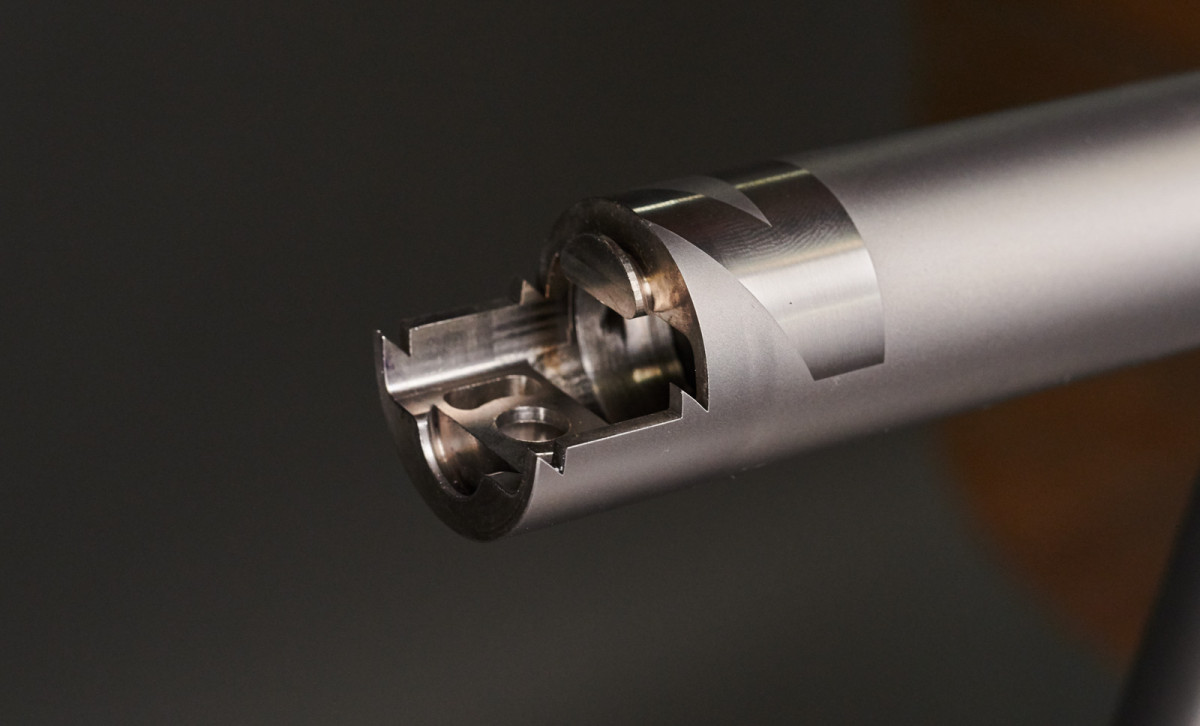 Kemudian, di dalam down tube, ada sistem baru pula yang dinamai "Brake Break." Kabel rem dan lain-lain bisa dipasang-lepas dengan sangat mudah. Tidak perlu setel ulang. Termasuk sistem disc brake hydraulic!
