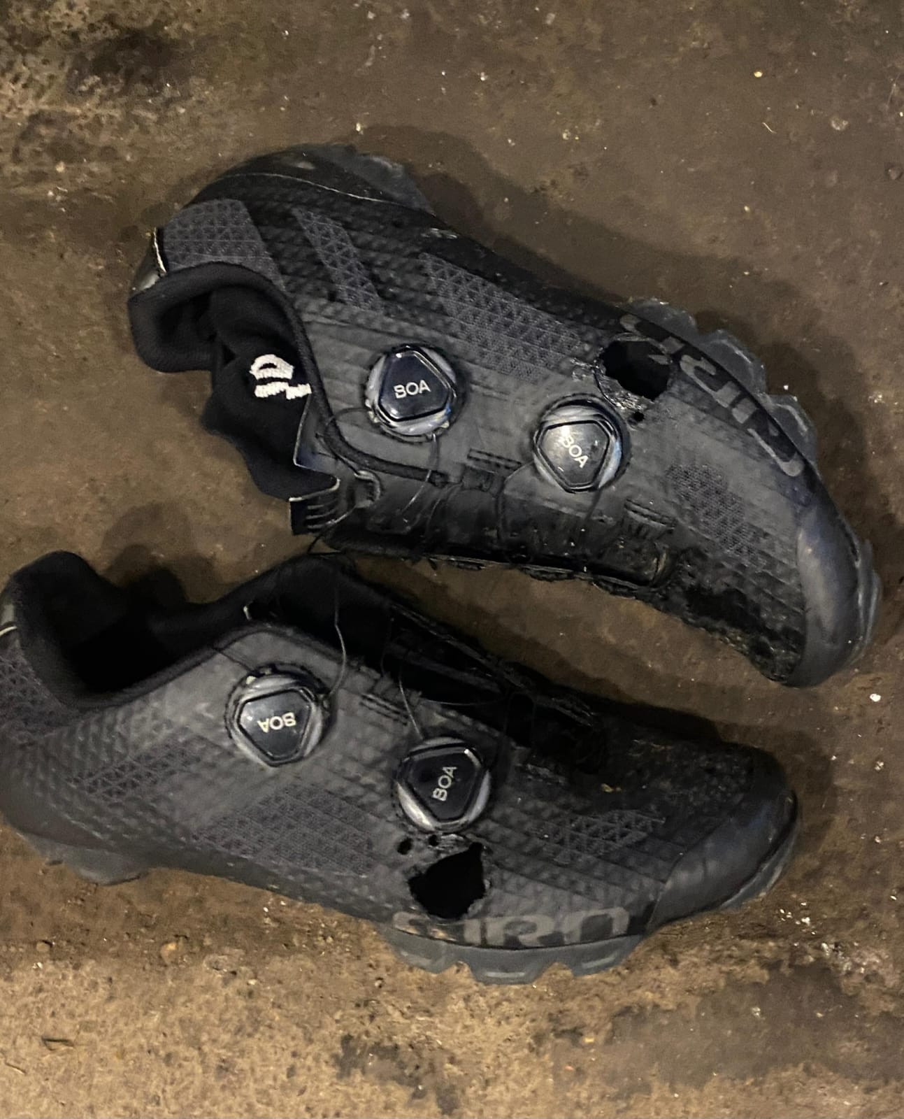 Kondisi sepatu Miswanto yang harus dilubangi karena kakinya kesakitan.